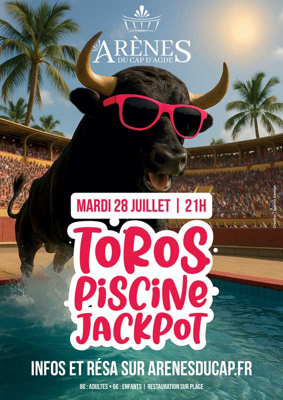 PrĂ©parez-vous pour une soirĂ©e fun et pleine d’adrĂ©naline aux ArĂšnes du Cap d’Agde avec le cĂ©lĂšbre Toros Piscine Jackpot !